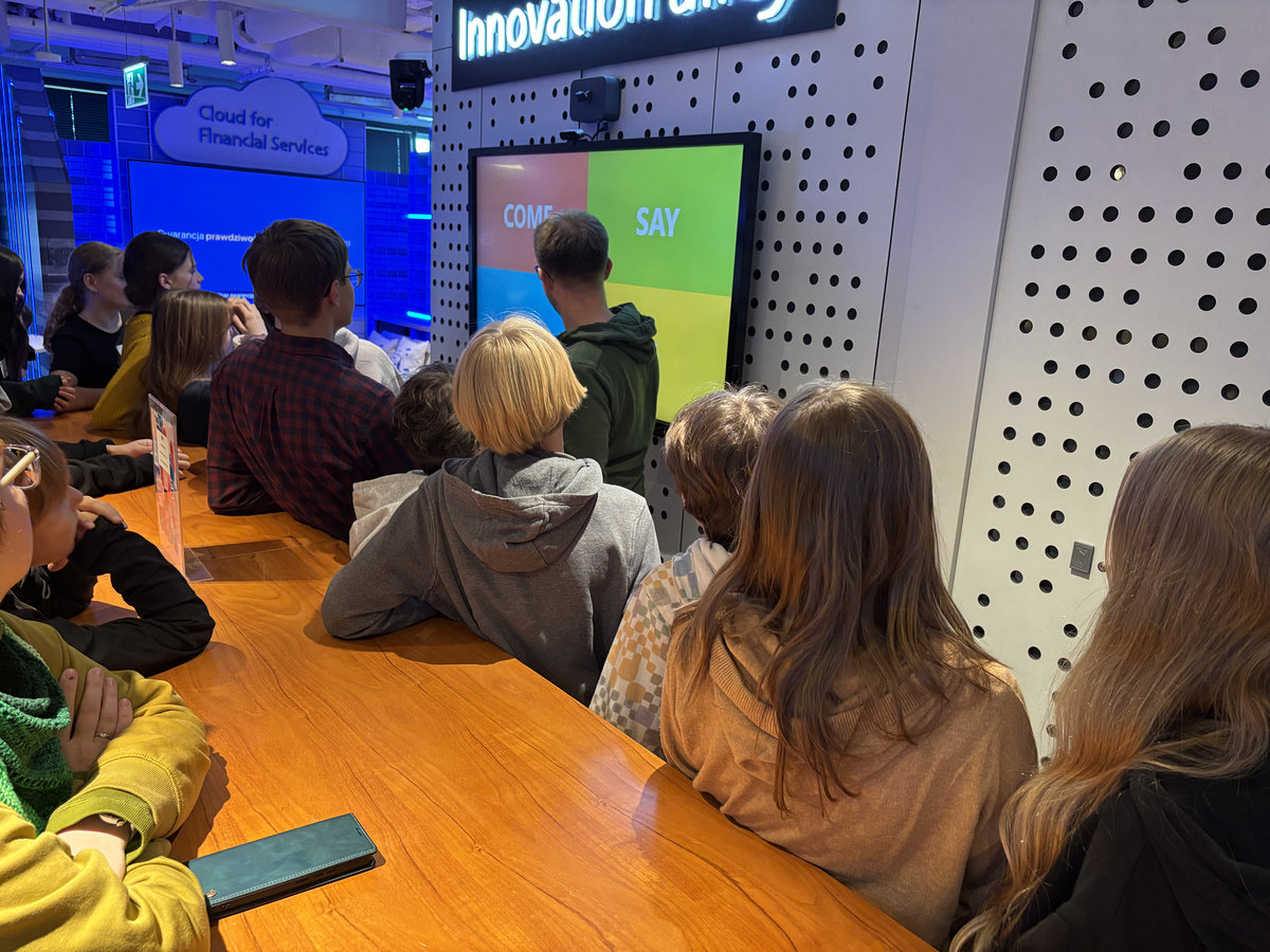 Siódmoklasiści odkryli również: kim jest programista, jakich języków i technologii trzeba się uczyć, co oznacza projektowanie doświadczeń użytkownika (UX) oraz czy na Microsoft Teams można zrobić makijaż. Zastanawiali się też, co robi w warszawskiej siedzibie firmy kiosk samoobsługowy z Burger King. Podczas wizyty uczniowie wysłuchali ważnych informacji o bezpieczeństwie w sieci oraz o działaniu sztucznej inteligencji.