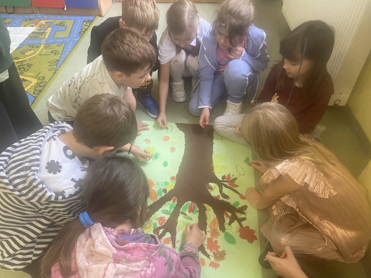 Z okazji Dnia Drzewa uczniowie klasy 1B wzięli udział w ciekawych zajęciach świetlicowych poświęconych przyrodzie. Dzieci dowiedziały się, dlaczego drzewa są tak ważne dla ludzi i zwierząt oraz jak możemy o nie dbać na koniec obejrzały krótką prezentację przyrodniczą o drzewach rosnących w naszej okolicy. Dopełnieniem zajęć było wykonanie wspólnie plakatu pt. Drzewo naszym przyjacielem. Dodatkowym urozmaiceniem był spacer wokół szkoły, nasze świetliczaki obserwowały drzewa , poznawały ich gatunki oraz uczyły się rozpoznawać liście i korę. To był dzień pełen ciekawych odkryć i przyjemnego kontaktu z przyrodą.