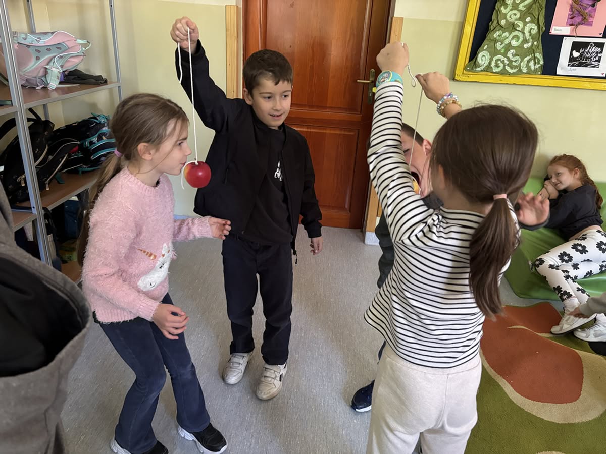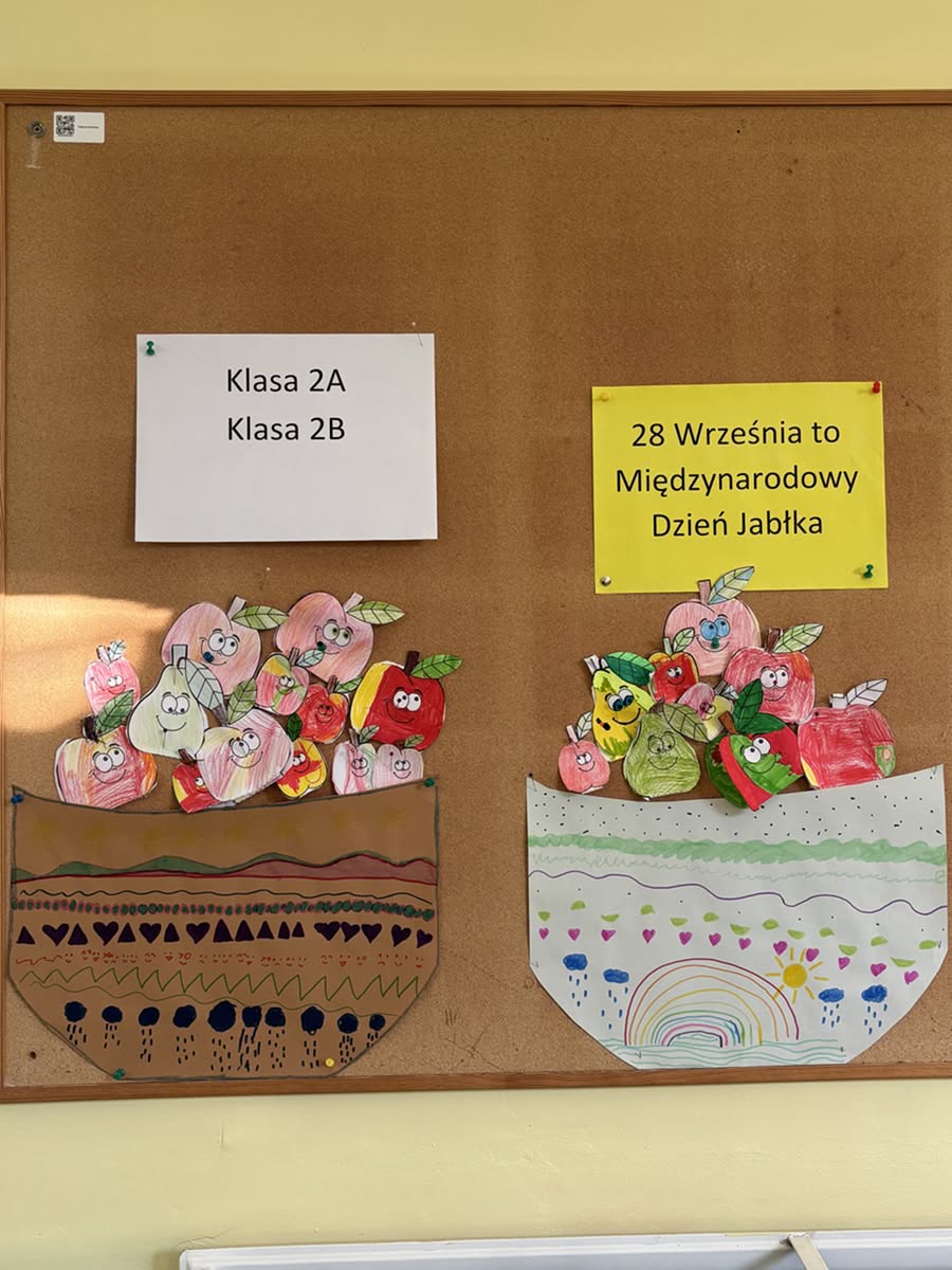 Klasy 2 a i 2 b wspólnie uczyły się o jabłuszkach, gdyż jest to nasz narodowy symbol owocowy. Dlaczego jabłko jest zdrowe, jakie są odmiany, co można z niego zrobić, dlaczego warto codziennie chrupać jabłka zamiast chipsów. Na koniec była wspólna plastyczna praca.