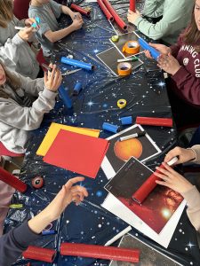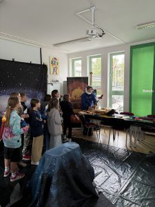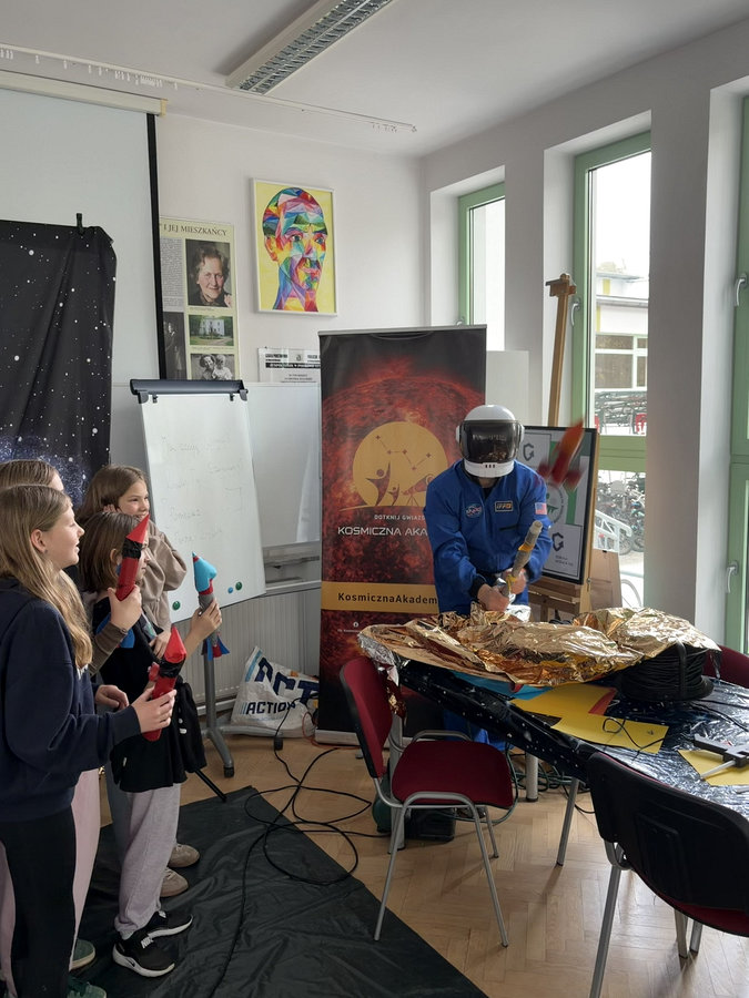 Uczniowie klas piątych wzięli dziś udział w niezwykłych warsztatach prowadzonych przez Kosmiczną Akademię, podczas których odkrywali tajemnice Wszechświata. Dzięki interaktywnym zajęciom mogli poznać m.in. planety, gwiazdy oraz zjawiska zachodzące w kosmosie, ucząc się poprzez doświadczenie i zabawę.