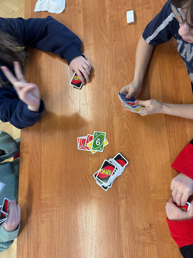Raz w tygodniu, w poniedziałek podczas pierwszej długiej przerwy, uczniowie klas 4–8 mają możliwość uczestniczenia w zajęciach w ramach innowacji pedagogicznej. To wyjątkowy czas, w którym poprzez gry planszowe, logiczne i integracyjne rozwijamy kompetencje społeczne oraz umiejętność współpracy.