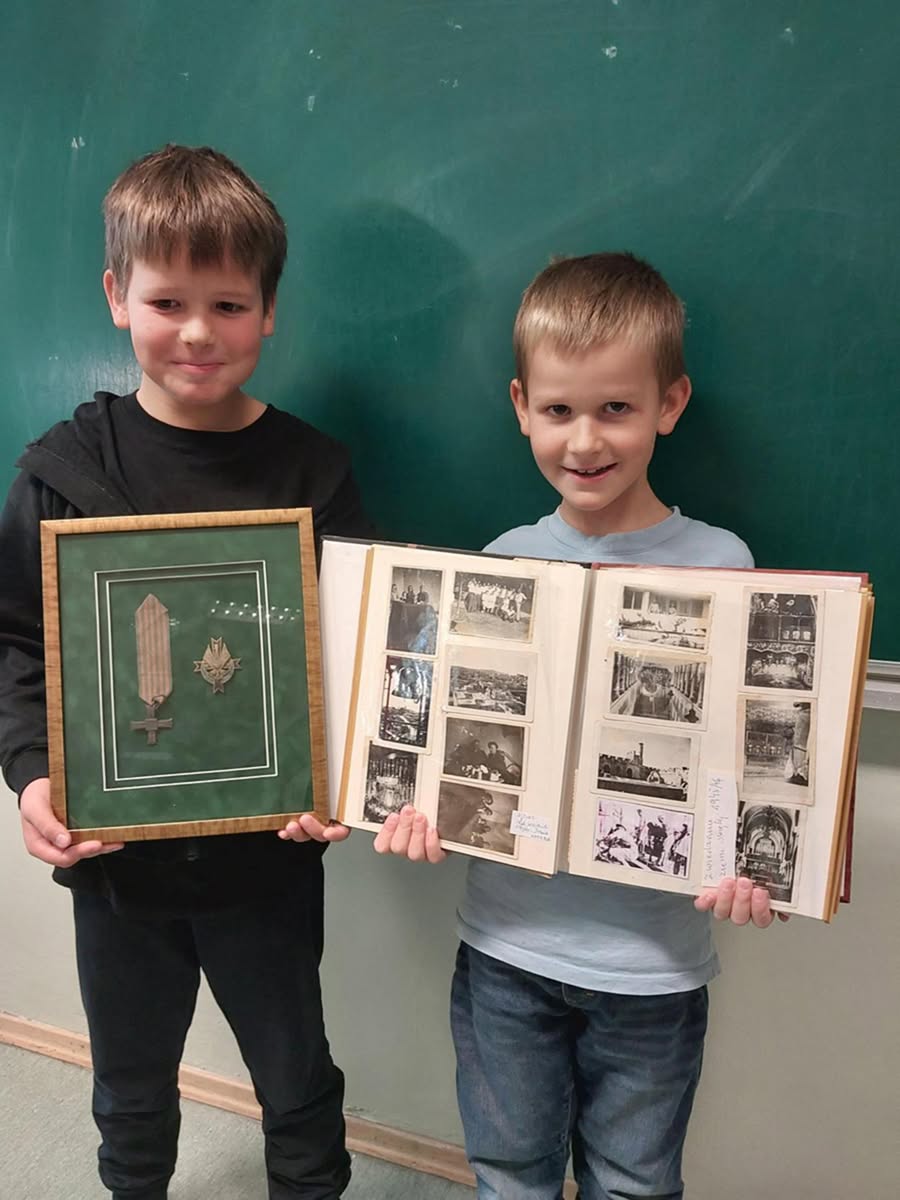 Poznając przygody dzielnego niedźwiadka – kaprala Wojtka służącego w Polskim Korpusie Artylerii pod wodzą generała Andersa mieliśmy okazję poznać bliżej jednego z żołnierzy- Ludwika Kosiorka. Dzięki wspaniałym zdjęciom i krzyżowi zasługi, który udostępnili na czas zajęć rodzice naszego ucznia- Państwo Karolina i Tomasz Boczkowscy uczniowie mogli zobaczyć jak wyglądał ten trudny, wojenny czas. Franio podzielił się z nami historią rodzinną pełną ciekawych wątków. „Dziadek i niedźwiadek” był wyjątkowa lekturą.