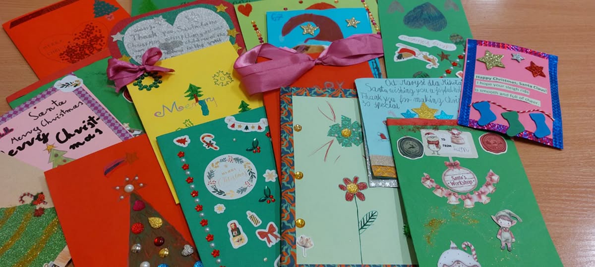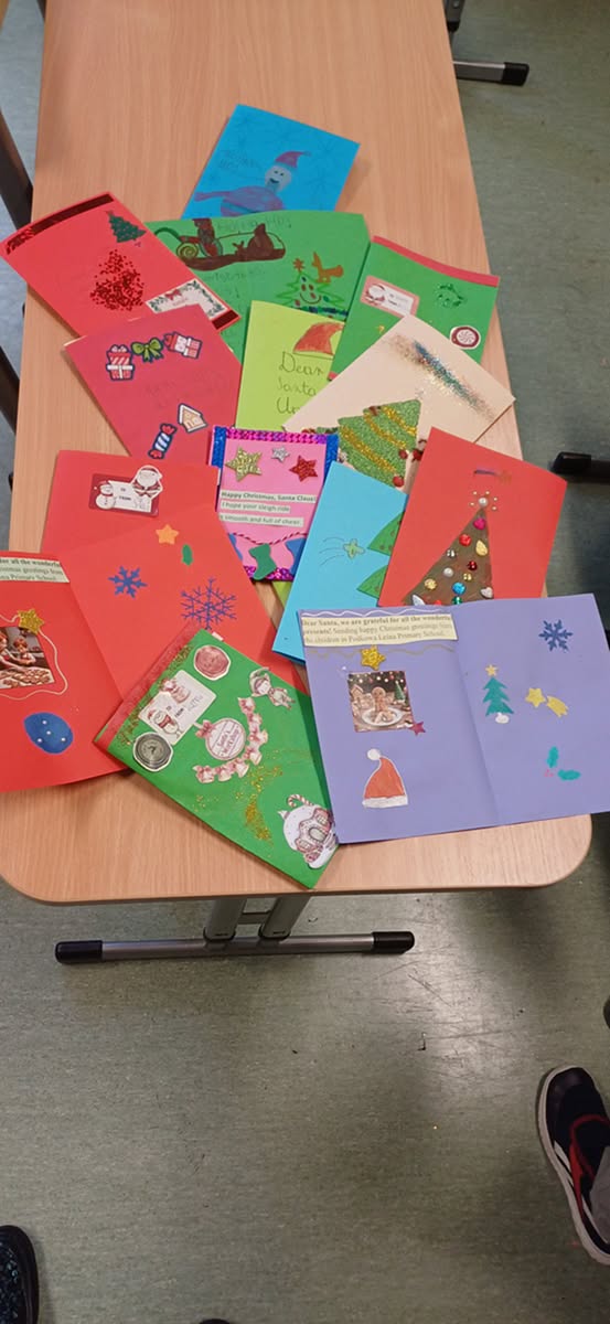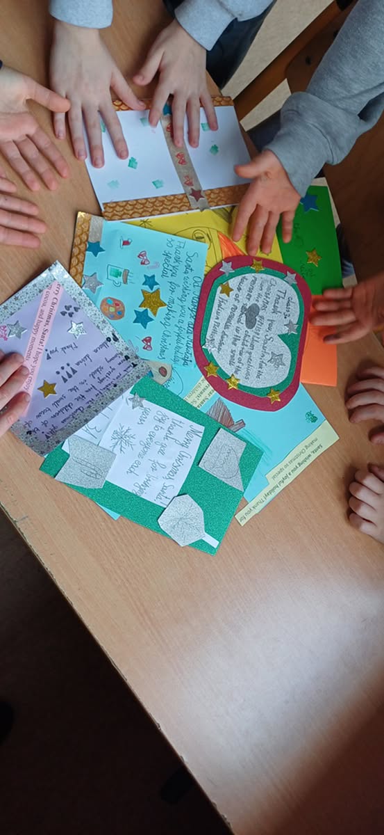 W ubiegłym tygodniu, podczas lekcji języka angielskiego klasy 1-3 pisały kartki świąteczne do Świętego Mikołaja. Dzieci podjęły decyzję, że będą to przede wszystkim życzenia i pozdrowienia, a nie prośby o prezenty.