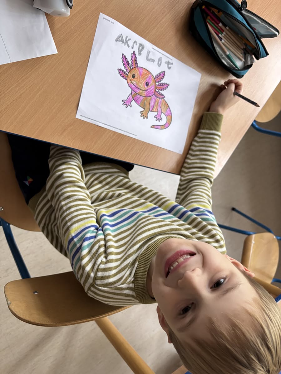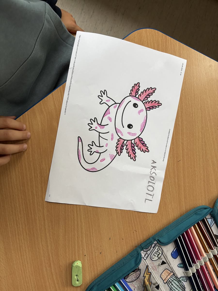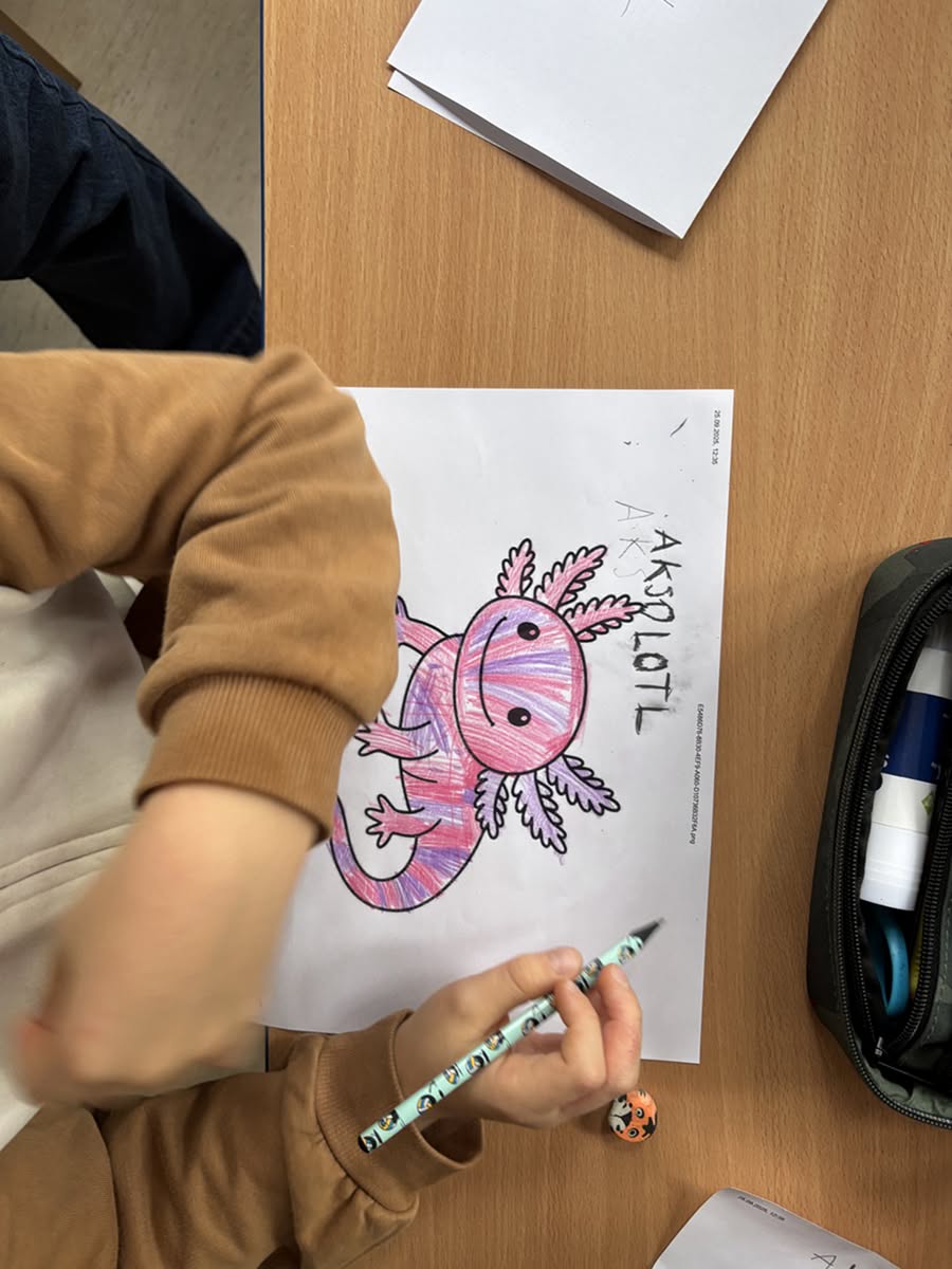 Klasa 2 B miała w ramach projektu Najdziwniejsze Zwierzęta Świata zajęcia w świetlicy o Aksolotach. Dzieci dowiedziały się wielu ciekawych rzeczy o tych uśmiechniętych zwierzętach, a sztuczna inteligencja pomogła nam stworzyć wspaniałe karty pracy.
