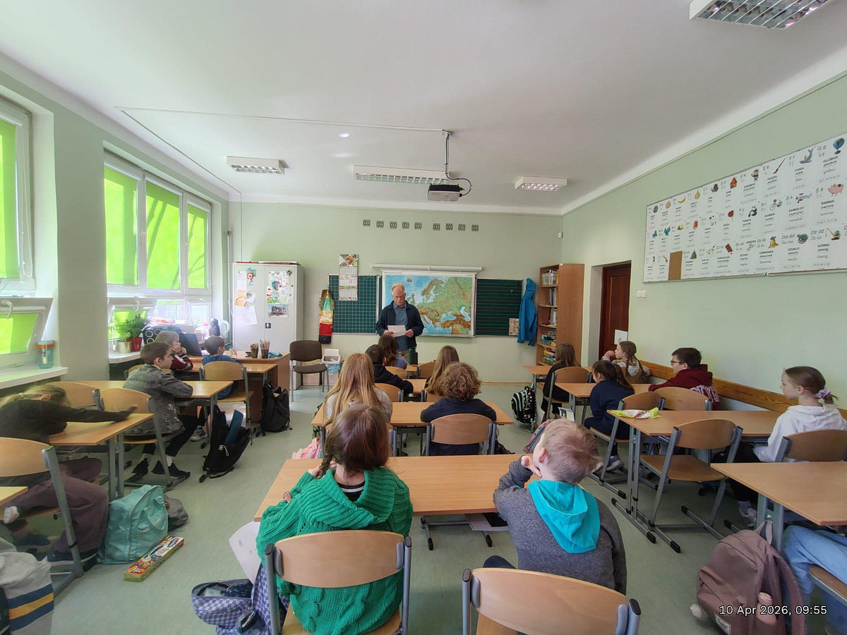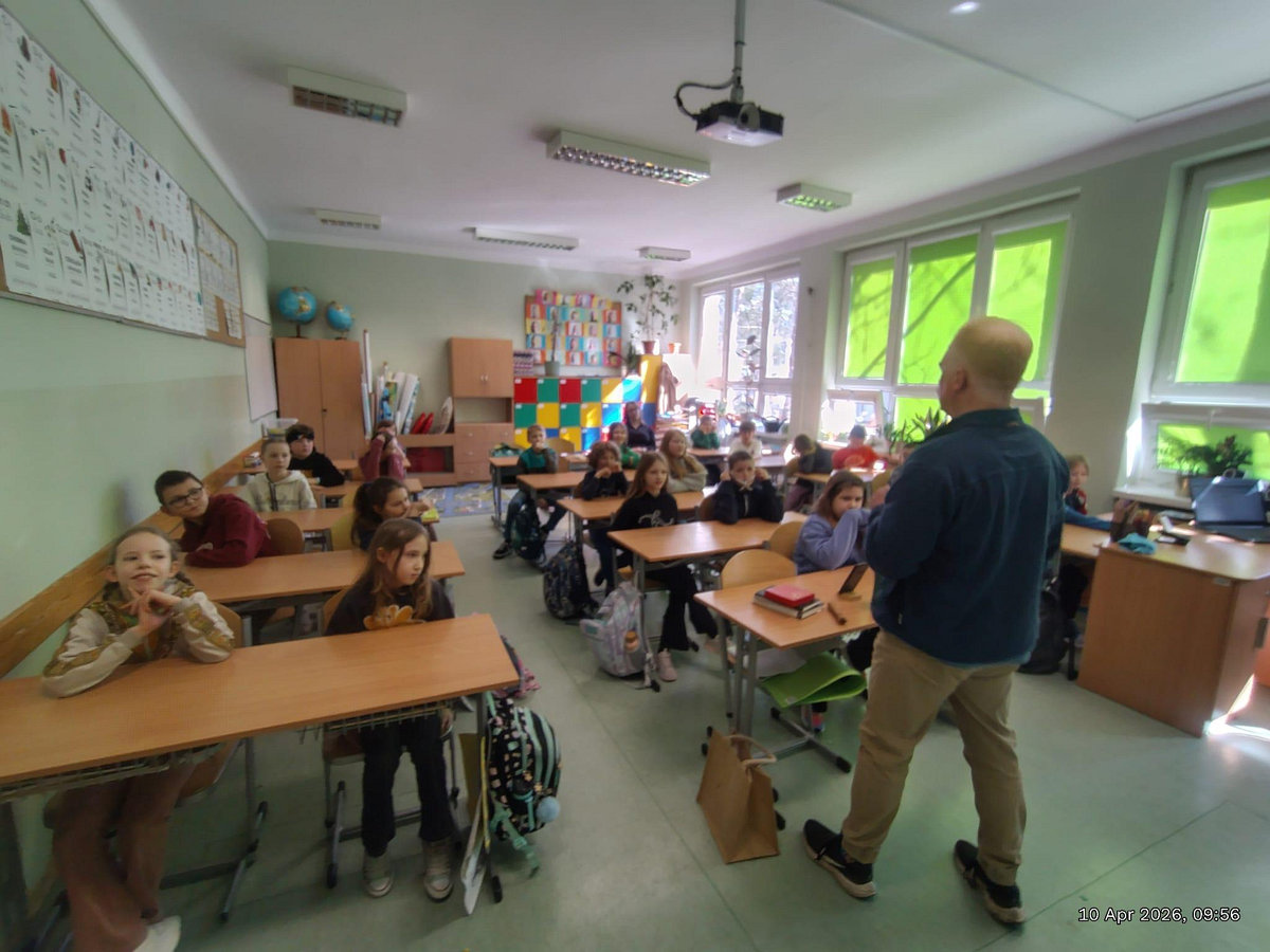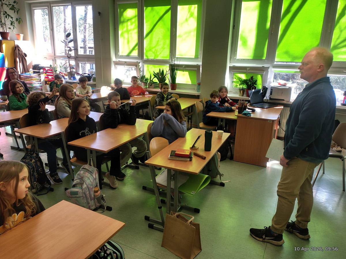 Uczniowie klasy 3b wzięli udział w niezwykłej lekcji historii. Odwiedził nas Philip Earl Steele – amerykański historyk i badacz nad początkami państwa polskiego. Uczniowie z zaciekawieniem wysłuchali przejmujących opowieści pełnych ciekawostek. Jesteśmy bardzo wdzięczni za podzielenie się z nami swoją wiedzą i pasją.