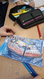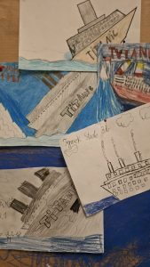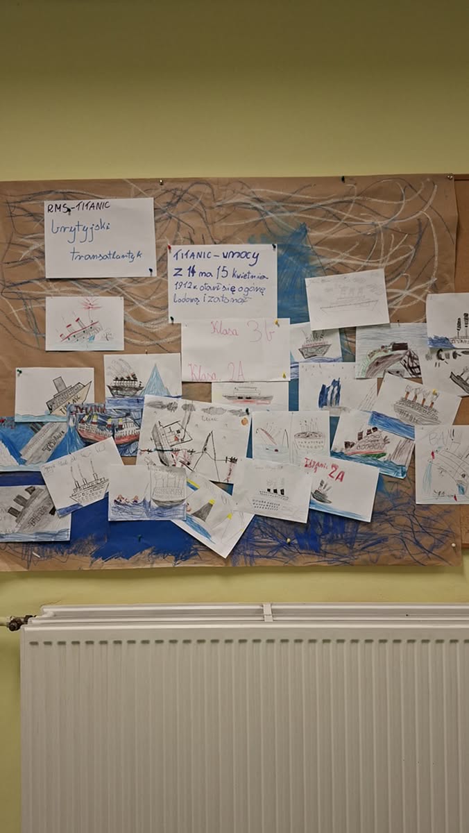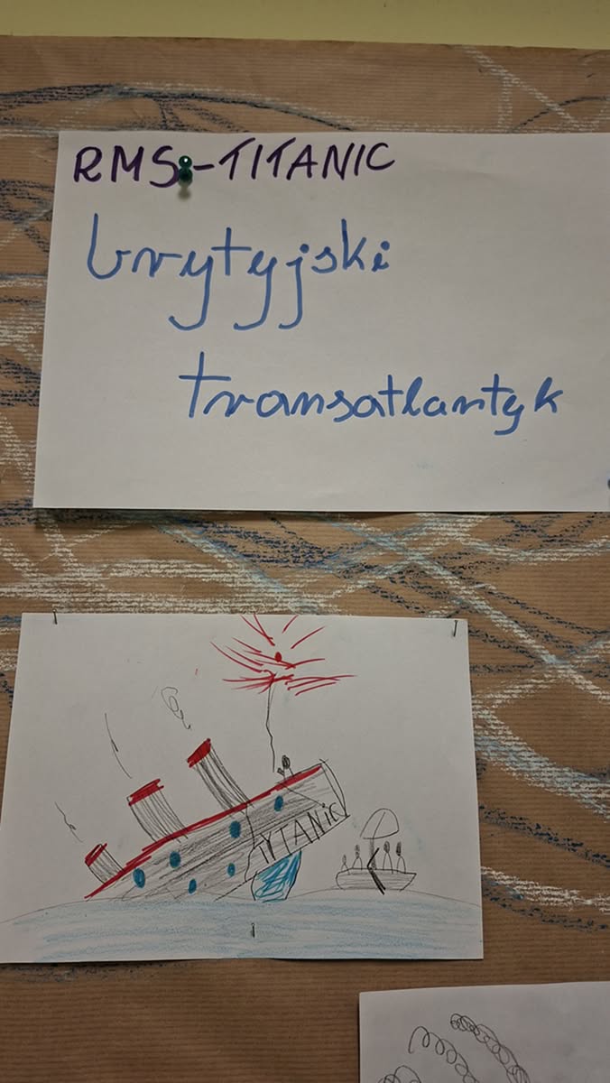 W trakcie zajęć świetlicowych dzieci z klasy 2a i 3b odbyły wirtualną wycieczkę do Muzeum Titanica w Pigeon Forage (USA). Uczniowie poznali historię legendarnego statku, mogli zobaczyć odtworzone wnętrza i oryginalne pamiątki. Powstał również ciekawy plakat z pracami uczniów.